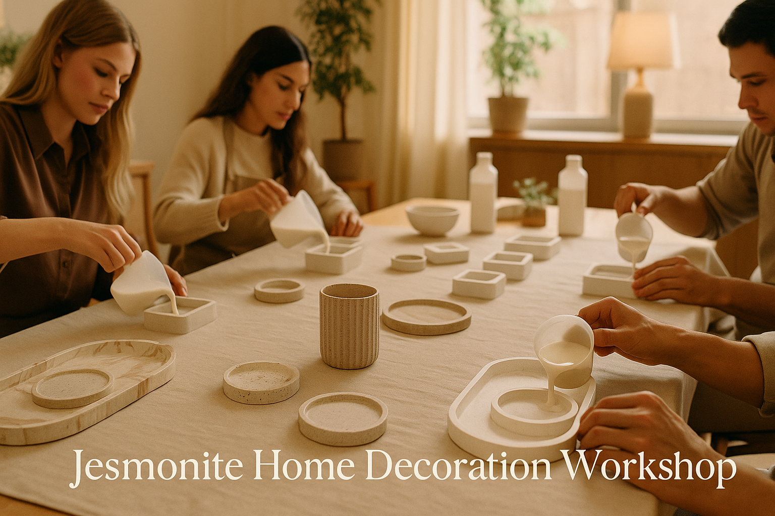 Bring style and sustainability together in our Jesmonite Home Decoration Workshop. Jesmonite is a water-based, eco-friendly material that looks and feels like stone, perfect for creating elegant trays, coasters, candle holders, and more.