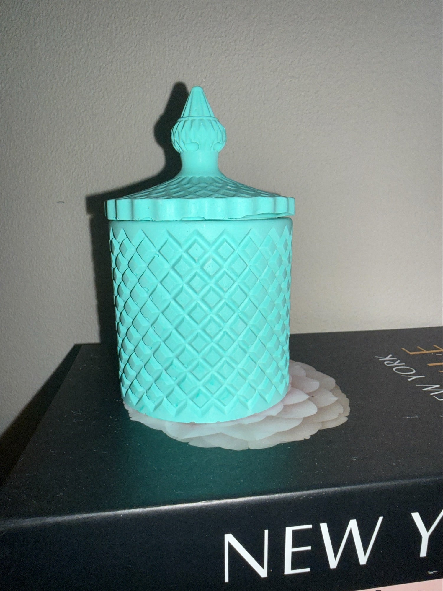 Each piece is hand-poured using 100% natural, eco-friendly materials, making it not only a stylish décor item but also a sustainable choice. Its unique diamond pattern and classic lid make it a versatile accessory for every interior.